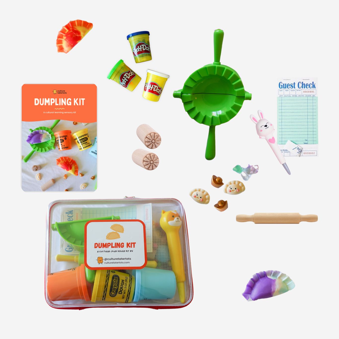Spark creativity and cultural connection with the Dumpling Play Dough Kit! Packed with fun tools and accessories, this kit lets kids explore the art of dumpling-making through imaginative play. Inside the convenient hard zippered pouch, you’ll find: